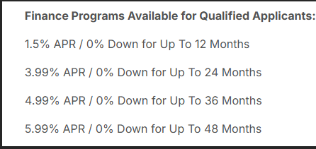 Extended Warranty until 05/31/2027: 1.50% | 0% Down for Up to 12 Month...