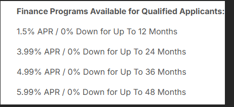 Extended Warranty until 05/31/2027: 1.50% | 0% Down for Up to 12 Month...